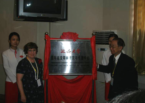 凌青先生和谢莉尔·福斯特·比绍夫女士一同为我校国际延安精神研究与传播中心揭牌