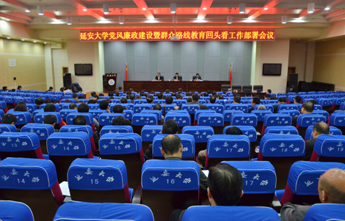 本网讯 4月17日下午,我校2014年党风廉政建设暨群众路线教育回头看工作部署会议在图书馆报告厅举行。全体在校的校领导,纪委委员,全校副处级以上干部,纪委(监察处)、审计处全体工作人员,创新学院纪委负责人,附属医院全体院领导班子成员、纪检监察副科级以上干部及重点部门负责人参加了会议。会议由校长崔智林同志主持。