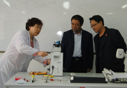 王顺书记在医学院主要负责同志的陪同下,先后对医学院家属区、学生食堂、锅炉房、澡堂、操场及一、二号教学实验楼等进行了走访调研。调研过程中,王顺书记实地考察了参观了位于一号教学实验楼的标本陈列室和位于二号教学实验楼的形态学实验室和医学实验中心,并与授课教师进行了亲切交流。