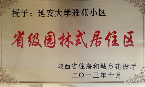 本网讯 日前,我校雅苑小区被陕西省住房和城乡建设厅命名为省级园林式居住区。3月28日,延安市园林处将奖牌转授予我校。