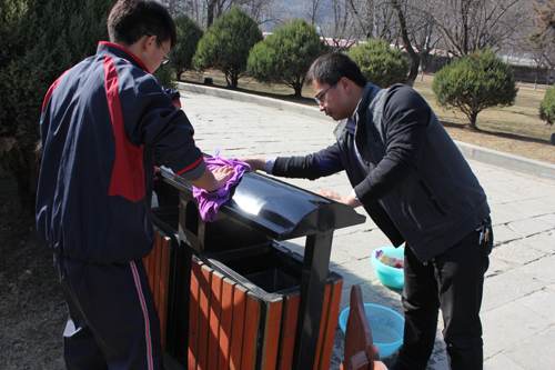 “我为环卫顶个班”红色旅游景点志愿服务队 3月22日上午6:40,由计算机学院、体育学院、文学院、鲁艺学院100多名志愿者组成的“我为环卫顶个班”红色旅游景点服务队分赴枣园、王家坪进行志愿服务。志愿者们替环卫工人打扫负责片区,认真清理了枣园、王家坪的卫生死角,并在活动结束后与环卫工人进行了联谊。志愿者们纷纷表示会倡议更多的同学加入到这个队伍中来,为公益环保、关爱环卫工献出自己的爱心和行动。