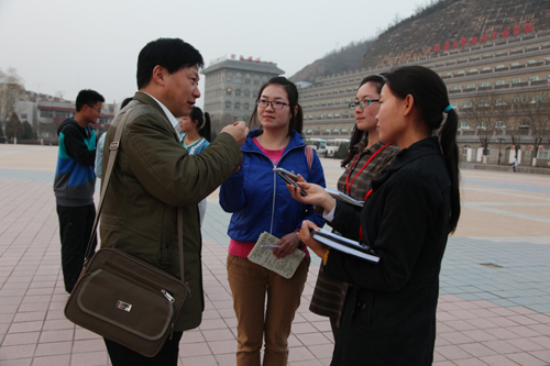 范跃宁同志接受我校广播台和圣地红网学生记者采访