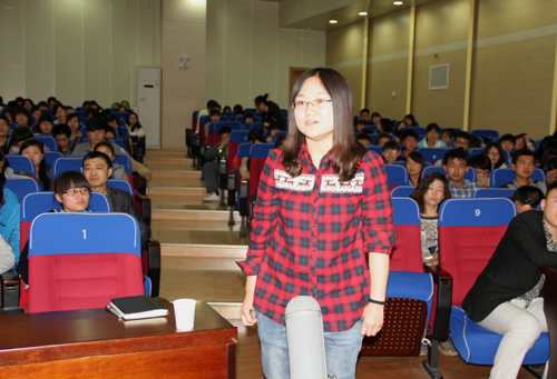 范跃宁同志的精彩报告打动了在场的每一位学生,同学们聚精会神地聆听着范老师的报告,用多次的掌声给予了回应和敬意。曾受范跃宁同志资助的、我校化工学院12级学生袁卡在发言中表达了对“范爸爸”的感恩之情,并表示将把慈善这种大爱传递下去,做一名有梦的延大人,用延安精神共筑最美的延安。