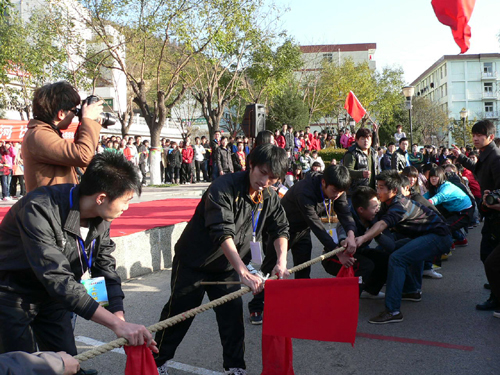 作者:张帆 张顺新 核稿:姜 庆 编发:新闻中心 发布日期:2011年11月22日 本网讯 为了丰富我校校园文化生活,增强学生体育锻炼的意识和集体协作精神,11月18日至20日,由校学生会主办的学生冬季拔河比赛在窑洞广场举行。