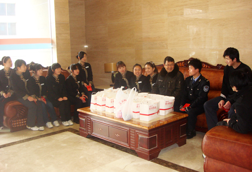 记者:郭 伟 通讯员:马小惠 发布日期:2012年1月23日 本网讯 在龙年春节来临之际,1月22日上午,农历除夕,学生处处长韩卿元与部分工作人员来到窑苑假日酒店,看望慰问了春节期间留校的学生,向他们送去了学校的关怀和新春的问候。