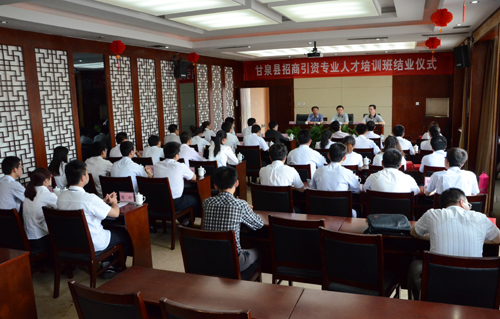 作者:李 瑜 摄影:曹兴美 编发:新闻中心 发布日期:2012年6月11日 本网讯6月10日上午9时整,甘泉县招商引资专业人才培训班结业仪式在我校窑苑酒店会议室举行。