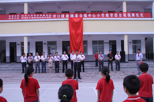 记者:郭 伟 发布日期:2012年6月8日 本网讯 5月31日,在六一儿童节来临之际,由我校和长安大学等四所高校援建的商南县魏家台镇中心小学综合楼揭牌仪式在商南县举行。