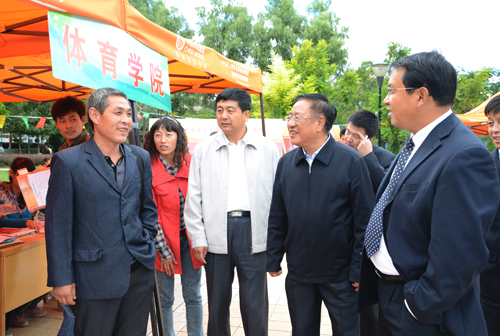 记者:郭 伟 曹兴美 陈 城 发布日期:2012年9月13日 本网讯 9月12日下午和13日上午,党委书记刘建德和校长崔智林、副校长许静洪,在学生处有关负责人韩卿元、高峰、马小惠、李扬等的陪同下,先后来到我校各学院新生接待点、逸夫楼缴费点、体育馆体检点、图书馆军训服及学习用品发放点和学生公寓生活用品发放点,仔细察看并详细了解了各学院迎新工作的准备情况和新生报到情况,对辛勤工作在接待一线的师生和工作人员进行了慰问...