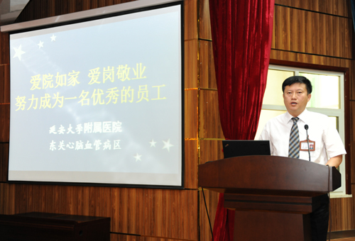 作者:薛 飞 核稿:李建雄 编发:新闻中心 发布日期:2012年9月28日 本网讯日前,附院东关分院人事科和团委组织了对2012年度新员工的岗前培训,共有240人参加了培训。