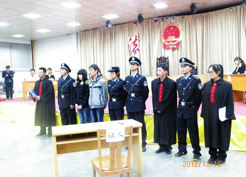 作者:蒙婵丹 核稿:李 伟 编发:新闻中心 发布日期:2012年11月21日 本网讯 为了使法学专业学生熟悉庭审过程,增强学生法制意识,11月18日晚,学生法学社在学生活动中心举办了模拟法庭活动。