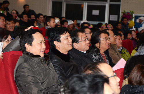 记者:郭 伟 曹兴美 发布日期:2012年12月29日 本网讯 欢庆的锣鼓敲起来,喜庆的秧歌扭起来,12月28日晚,由校工会委员会主办的喜庆十八大暨迎新年教职工陕北秧歌大赛在我校大礼堂举行,校领导崔智林、王亚杰、胡俊生,党委委员、组织部部长薛美玲及各部门和各学院主要领导,与近千名师生共同观看了比赛。