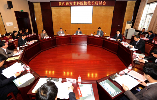 作者:张永红 核稿:解文元 编发:新闻中心 发布日期:2013年4月17日 本网讯 4月16日上午,陕西地方本科院校校长研讨会在西安文理学院举行,陕西省教育厅副厅长郭立宏,陕西理工学院校长何宁,宝鸡文理学院党委书记、校长王志刚,咸阳师范学院校长刘彬,渭南师范学院副校长李海龙,榆林学院校长赵红星,安康学院副校长陈刚,商洛学院校长张景书等应邀出席了研讨会。